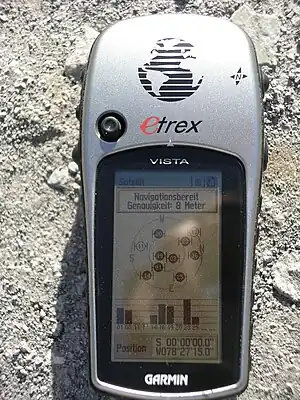 -- DrMark 20:30 4 June 2007: Vista Cx: I bought this following the final end of my old Vista, it is a vastly better unit for not that much more money. It takes a micro-SD card so you can have a variety of maps, or a single huge one. I use a (£20) 1Gb card & the original 64Mb. It has a USB interface, & is waterproof, it's been robust so far (>6 months), including use with a bike mount. The above points regarding tracklogs are unchanged, but I find it works better in a pocket than the old Vista. It does work with osmgarminmap. The inbuilt Garmin world map is poor. The altimeter needs at least daily calibrating if you want to use it seriously. The compass is good but more sensitive to local variations than a traditional magnet one, it often disagrees with the calculated direction.