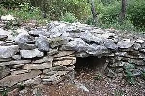 | material=dry_stone | Abri basique construit en pierre sèche |