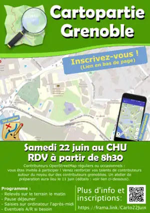 Inscription ici : https://framadate.org/CartopartieOpenStreetMapGrenobleSamedi22Juin