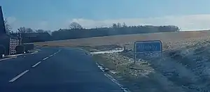 Byzoner markeres med et hvidt skilt med et sort relief under bynavnet.