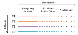 Only 3 categories: -T1/T2: ........ -T3/T4: ... ... ... -T5/T6: .. .. .. Paths not highly visible on the map. |