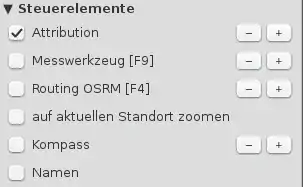 Das + auf grauem Hintergrund öffnet das wichtigste Werkzeug der Karte: die Ebenenauswahl. Hier können Kartenebenen (Layer) und Werkzeuge an- oder abgeschaltet werden.