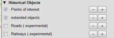 You may select which type of objects should be shown. Default is Points of Interest and Extended objects (line and area objects). There are some mutually exclusive experimental layers for historical roads, railways or boundaries. These are subject to change without further notice.