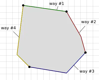 - ezen vonalaknak egy érvényes (angolul valid, ejtsd: /ˈvæl.ɪd/) elrendeződésben állva gyűrűket kell alkotniuk, hogy szabályos multipoligont tudjunk belőlük létrehozni.