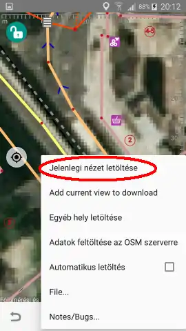 Szerkesztés előtt le kell töltenünk a területet, a 'Jelenlegi nézet letöltése' menüponttal. Ez a menüpont törli az esetleges korábbi, még nem feltöltött szerkesztéseinket, erre egyébként figyelmeztet a program is. Ha feltöltés nélkül további területet akarunk hozzávenni a jelenlegihez, akkor az 'Add current view to download' menüponttal töltsük le a térképadatokat.