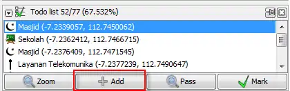 - Download the OSM data with covered area the Bulak Sub District, and paste (CTRL + V) in Data Layer 1. In select mode, you can add the infrastructure in Todo list Tools to manage the data more easily. Click on the Add button of the Todo List.