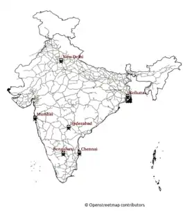Mapping of the railway network was initially limited to the major Indian cities which had highres yahoo imagery. in these major cities, the coverage is excellent with close to complete mapping coverage of the suburban railway systems (Mumbai, Delhi, Chennai Kolkata) railway yards and even spur lines. Later even the metro system in Delhi was mapped completely and now even the alignments of metro lines under construction in Mumbai, Bangalore, Chennai and Delhi are available.