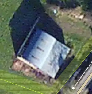 | building=garage | A service=driveway leads to this small to medium sized building, depending on the angle you can see a wide door, no chimney, a car or boat might be parked outside. | |