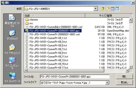 - JOSMメニュー⇒[ファイル]-[開く...]で、トレースしたいGPXファイルを選択してください。