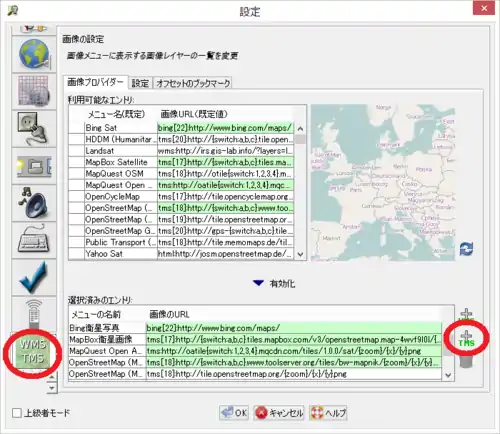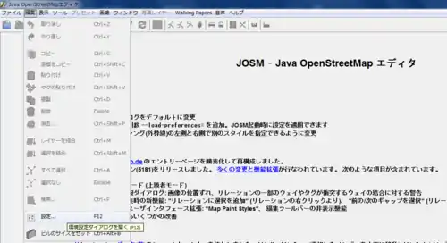 JOSMを起動し、"設定"→"WMS/TMS"を選択します。