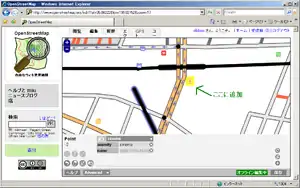 - OpenSteetMap上に、いろいろな地物(建物とか、地名とか)を追加します。