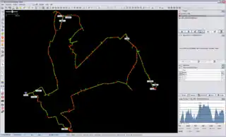 - Cursor: Move the mouse over the profile and see the corresponding point in the map view as a large yellow sphere, labeled with the corresponding time and elevation.