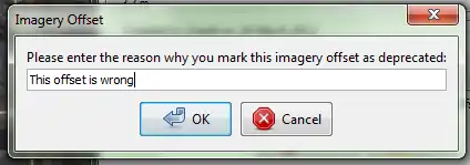 To upload the determined offset to the server, select the Bing Sat layer and choose the "Store imagery offset" menu item. You'd be asked only the description of an area, to which the offset is applicable. Note that this is not a name of a point where the offset was determined, but an area. The town in this example is small, therefore imagery offset is the same everywhere in it: