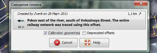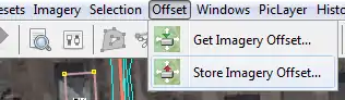 Let us add a new layer and draw a polyline on centerlines of intersecting objects. Then select it and choose the same menu item: "Store imagery offset". There we would be asked, what are we going to upload, calibration object or an offset: