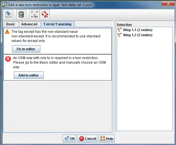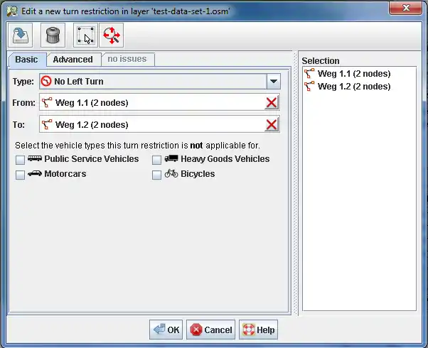 Online help information and howtos are maintained on the JOSM wiki. You can access them from the turnrestrictions plugin by pressing F1.