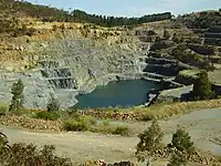 landuse=quarry + abandoned=yes | Abandoned and partially flooded quarry. Note that lifecycle scheme is not used here - that is because quarry describes landscape feature, not company operating there. This is a rare case where abandoned=yes is still recommended. | |