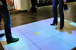 | attraction | game_installation | Stage or desk utilising projectors, VR or AR and capturing people's motions (e.g., via cameras) to allow for cooperative or competitive games including dancing. | ![]() | ||