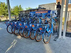| bicycle_rental=dropoff_point | A designated parking spot where bikes of a certain bicycle rental are stored, typically (but not necessarily) within a bigger bike parking. The bicycle rental service must have reserved parking spots, clearly indicated by signposts. The bikes are individually locked with smart locks, which can be unlocked and therefore rented via an app. There is no special infrastructure at the rental station itself. | ![]() |