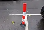 | bollard=flexible | A bollard made of a soft material which makes it able to bend the bollard. This can be e.g. found at parking lots. The bollard would probably leave no damage on vehicles colliding with it. | ![]() |