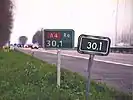 The reference values can be considered common knowledge because they are given on wikipedia:Driver location signs signs (e.g. M27 B 2.8, as seen in the image right) and are also printed upon the emergency telephones.