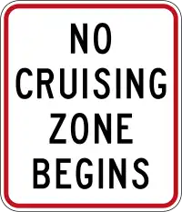 cruising. Cruising means driving a car repeatedly along the same road in a manner that causes a public nuisance.