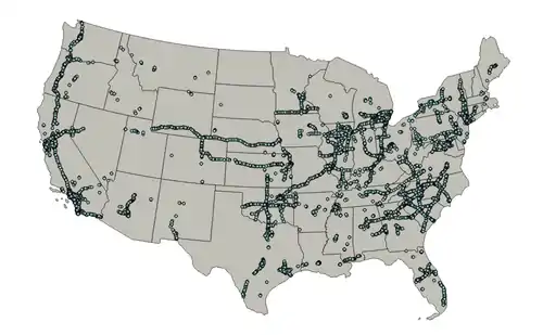 This map shows the geographical distribution of exit_to=* in the United States as of 2014-06-25.