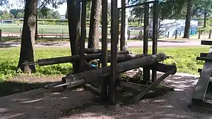 | fitness_station=log_lifting | One or more logs with a hinged end and a handle for lifting on the other end. | ![]() |