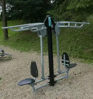 | fitness_station=air_walker | A fitness station with two swinging feet platforms and support bar for hands. | ![]() |