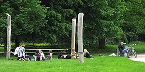 | fitness_station=slackline | A rope or ribbon between mounted between two points, for balance exercises. | ![]() |
