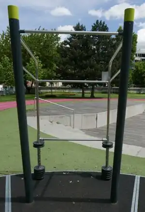 | fitness_station=horizontal_ladder | A series of short horizontal bars mounted side by side and high enough to hang on. Also known as monkey bars. | ![]() |