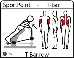 | fitness_station=tbar_row | T-Bar Row, also known as Incline Lever Row. Often equipped with weights. | ![]() |