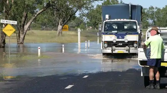 An area or way, that is prone to flooding. This is mostly applicable to roads that go under water after heavy rains. Flooded roadways are often very dangerous to cross and many people die each year as a result.
