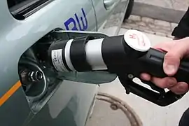 A hydrogen station is a storage or filling station for hydrogen, usually located along a road