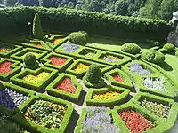 Flower garden. - garden:style=cottage_garden - The cottage garden is a distinct style that uses informal design, traditional materials, dense plantings, and a mixture of ornamental and edible plants, see