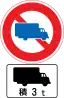 • Japan: maximum allowed weight ≥8 tonnes or load capacity ≥5 tonnes; for regulating smaller trucks, additional signs based on load capacity are used (see below).
