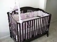 infant bed (also called "cot", "crib", "cradle" or "stock") is a special furniture used by a baby for sleeping.
