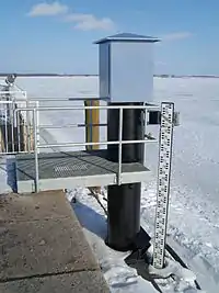 Used in combination with man_made=monitoring_station to indicate water levels in rivers, streams, lakes and other non-tidal areas, often to determine upstream flood levels during heavy rains.