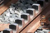 This type of railway has a toothed rack rail, usually between the running rails. The trains are fitted with one or more cog wheels or pinions that mesh with this rack rail. This allows the trains to operate on very steep gradients (see Wikipedia for more details). These are common in alpine regions of european countries, including Austria and Switzerland.