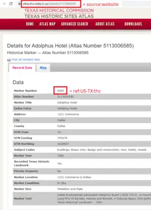 This key references a Texas Historical Commission (THC) plaque by it's marker number.