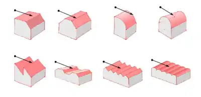 | Orientation of the roof surface(s) as the direction of the roof slope. |