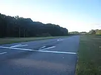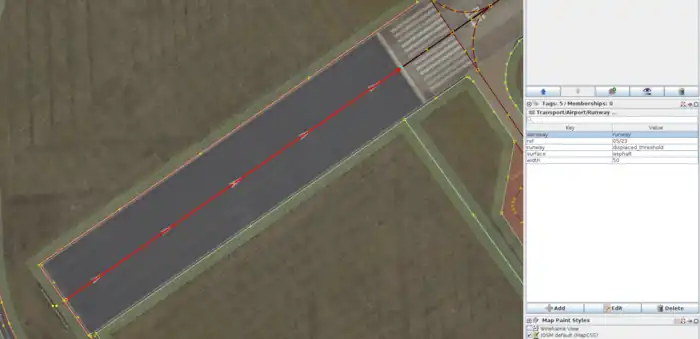 The area behind a displaced threshold is a runway section which has the same quality as the runway and is usually marked with arrows instead of a straight centreline. These sections, if present, can occur on one or both ends of the runway proper. It is distinct from aeroway=stopway.