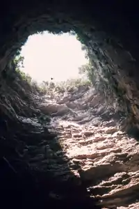 A sinkhole draining water, either temporarily or permanently, from a water body or a water stream; can be associated with polje as the draining orifice, and with rivers and streams, leading to their complete, permanent, or partial, temporary disappearance. This is one of the sinkholes a polje can contain. | Ponors does not always have a well-defined orifice, and often are few square meters areas filled with permeable alluviums or simply punctured by dozens of holes, whose location will only be clear by the sucking noises they make while water drains through them, or by the orientation of aquatic plants, curved in their direction by the water flow. Such area being also a ponor, it should me mapped as one unoccupied orifice. | |