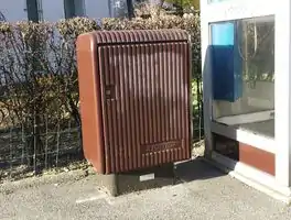 ![]() Telephone street cabinets, UK | man_made=street_cabinet utility=telecom hinge=horizontal operator=Openreach Domain specific: | Two telephone street cabinets in GB streets. First one is designed to hold DSLAM for VDSL connection and we can see on background an old copper primary connection point (PCP). |