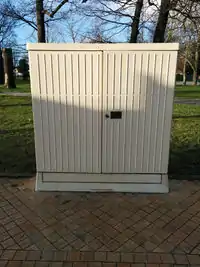 ![]() Street lighting cabinet, France | utility=street_lighting hinge=horizontal manufacturer=grolleau Domain specific: | A cabinet hosting switching, accounting and cables of public street lighting system. |