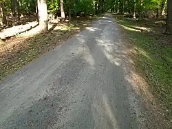 | surface | compacted | A mixture of larger (e.g., gravel) and smaller (e.g., sand) parts, compacted (e.g., with a roller), so the surface is more stable than loose gravel. Used, for example, for park paths, better tracks, some service ways, … Best sort of ways below paving with asphalt, concrete, paving stones. Sometimes known as water-bound macadam. Mixture and compacting leads to more grip and stability. | ![]() | |