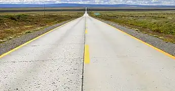 | surface | chipseal | Less expensive alternative to asphalt concrete, using a thin base of hot bitumen or asphalt with aggregate pushed into it. Common in many American countries and Oceania. Often hard to distinguish from asphalt concrete by laypersons, some consider it as subtype of asphalt rather separate surface. In the end many chipsealed roads are tagged as asphalt instead. | ![]() | |