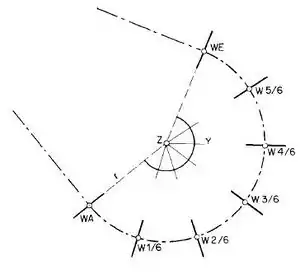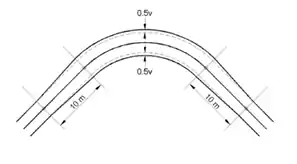 Curve with extra width, "v" is the extra width.