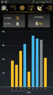 | If the compass of the device is used for calculating the direction, then a compass needle in the GPS icon is shown. |