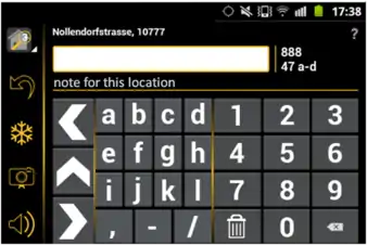 This is especially helpful when saving notes for future reference when optimising the data later in an OSM editor or if a house number must be mapped with characters different from the ones on the keypad.