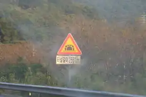 On the sign above we can see 터널길이, which is Korean for tunnel length. This tunnel is 500m long.